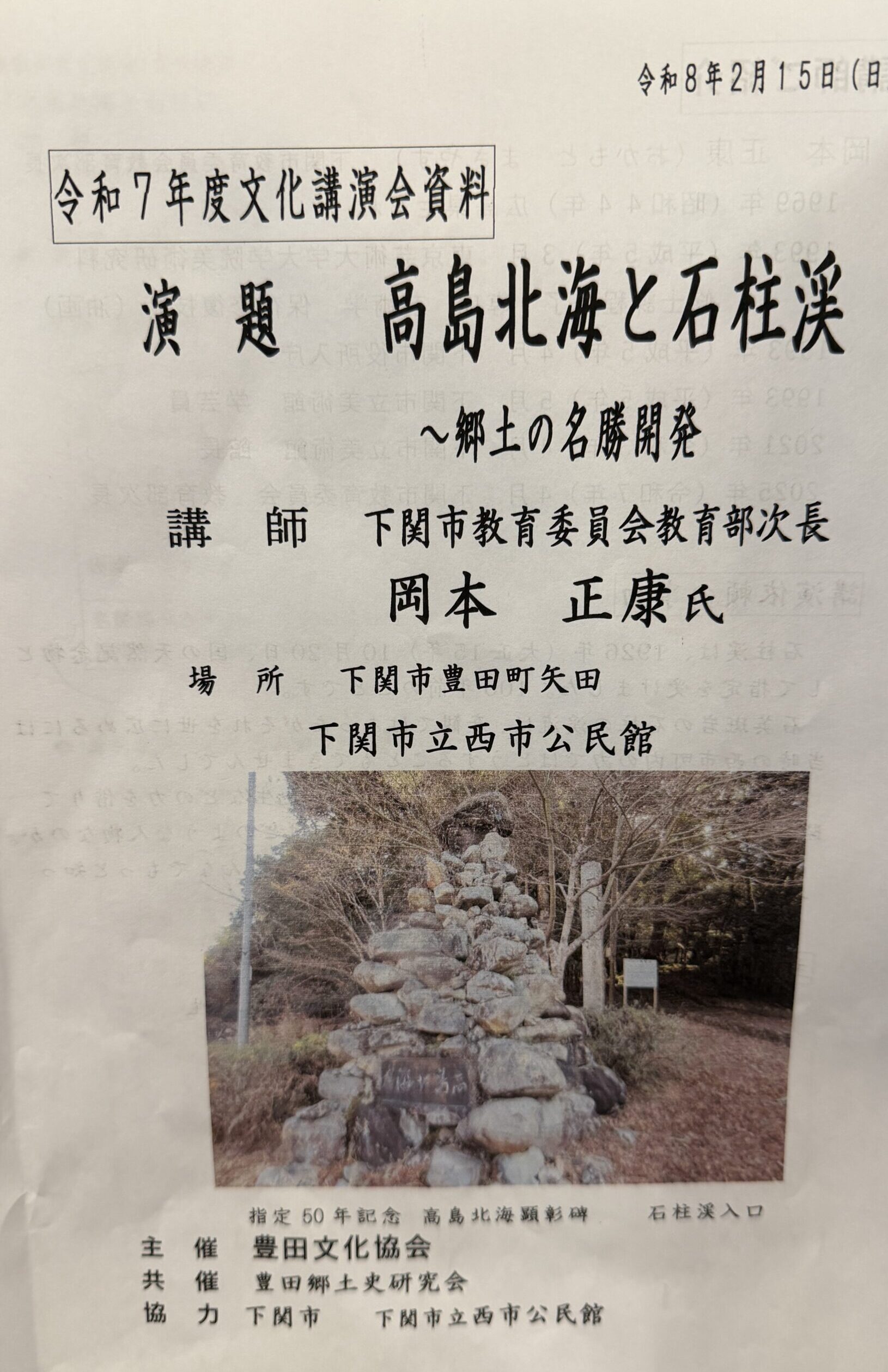 令和8年2月15日(日曜日)下関市立西市公民館にて『高島北海と石柱渓』の講演が開催されました。